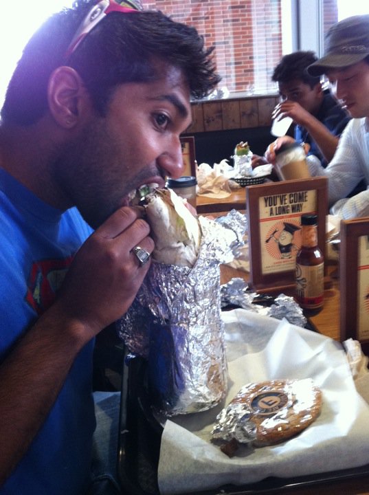 I was pretty sure I would not be able to finish it (of late I haven't been been able to knock any of these challenges out), but as I pushed through, the hope started to build that I might actually be able to put this thing away. This thing tasted fairly good (I love burritos, ya know? - one of those food creations that you can keep eating because each bite is just a little different in ingredient mix and tastes) and I was able to take some pretty massive chunks out early.